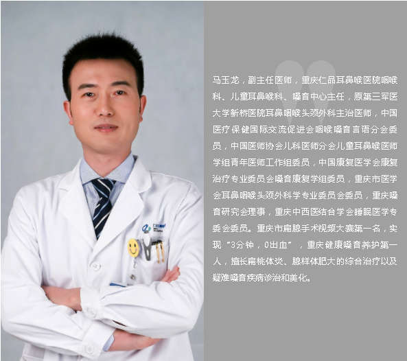 本次直播,由中国医疗保健国际交流促进会咽喉嗓音言语分会委员,中国康复医学会康复治疗专业委员会嗓音康复学组委员,重庆嗓音研究会理事,重庆仁品耳鼻喉医院咽喉科、儿童耳鼻喉科、嗓音中心主任马玉龙与大家交流互动。
