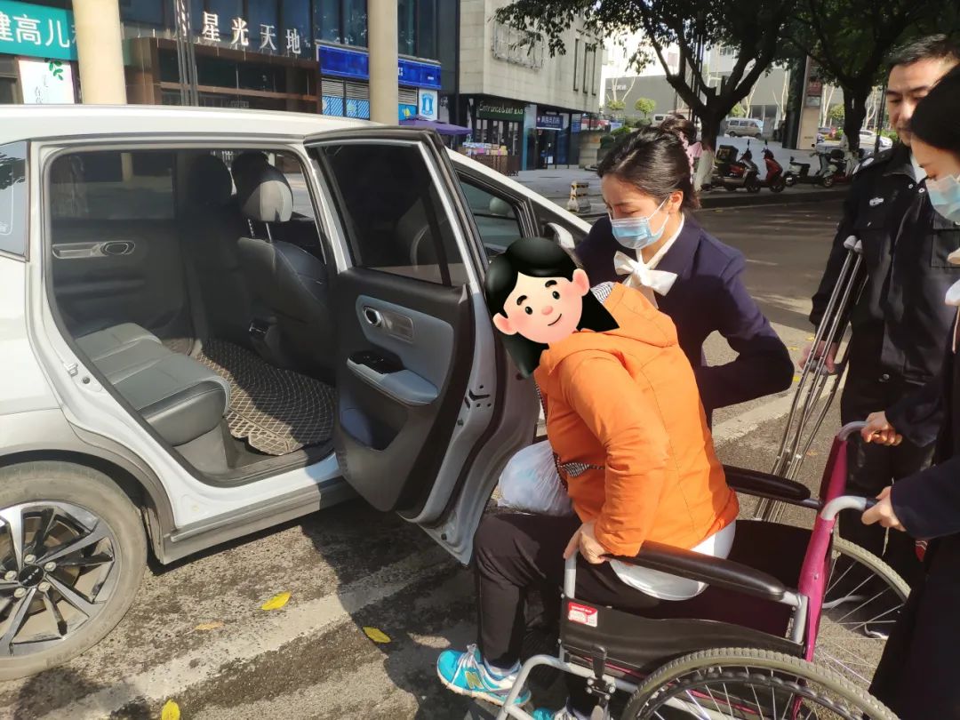 为了不耽误老公上班,张阿姨决定自己回长寿,我院品质服务部主管早上就开始忙上忙下帮她办出院手续,还自费给她打车送到车站,护士长也叮嘱她出院后居家护理事项。