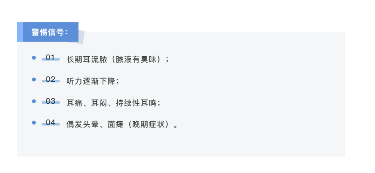 张主任在此提醒大家,耳朵不适绝非“小毛病”,如果出现听力下降、耳流脓、耳鸣等症状,一定要及时到正规医院就诊,明确诊断并接受规范治疗,切勿延误病情,造成不可挽回的后果。