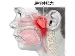 腺样体病理性增生肥大且引起症状者在临床上称为腺样体肥大。如上所述,由于腺样体位置特殊,因此其病理性肥大时可导致局部器官的病变,产生相关症状。其中,鼻部的症状包括鼻塞(打鼾、张口呼吸)、流涕、闭塞性鼻音,称为腺样体肥大三联征。耳部的症状,由于可引起分泌性中耳炎,因此可有耳痛、耳闷、听力下降等症状。咽喉部症状包括咽部不适、咳嗽等。