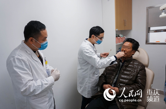 鼻科主任邓海华检查伤者情况(重庆仁品耳鼻喉医院供图)